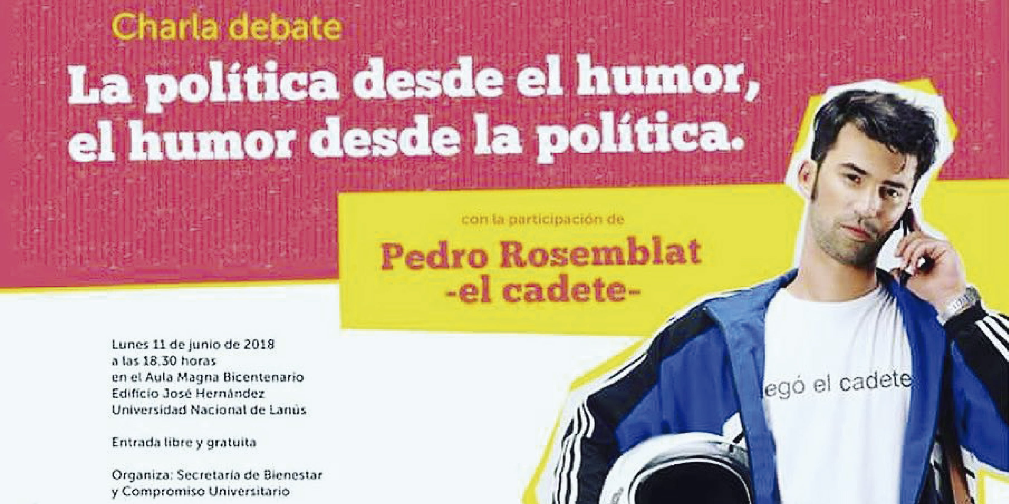 El joven y reconocido humorista, conocido más popularmente como «El cadete de Navarro», encabezará una charla debate junto a los alumnos. El encuentro buscará, desde el perspectiva del humor, trazar las estrategias necesarias para transformar una buena alternativa de cara a las elecciones del año que viene.