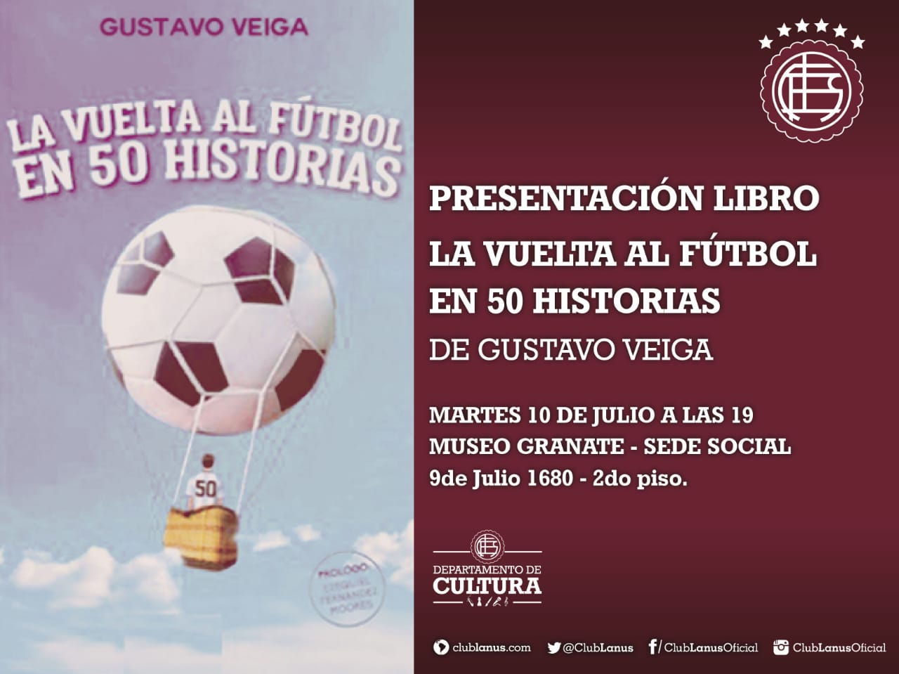 El reconocido periodista y escritor de Página 12, oriundo de la ciudad de Lanús, presentará su nuevo libro «La vuelta al fútbol en 50 historias», en el Museo Granate, ubicado en Av. 9 de Julio 1680, Lanús Este. El encuentro literario, organizado por el Departamento de Cultura de la institución, tendrá lugar a las 19 con entrada libre y gratuita.