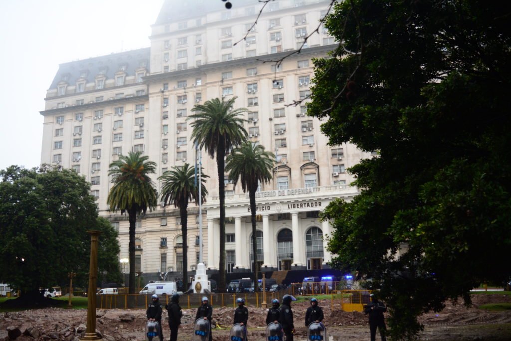 Frente al Ministerio de Defensa, y a metros de la Casa Rosada, venimos a decir que rechazamos la decisión del Presidente Macri, el ministro de Defensa Oscar Aguad, y el jefe de Gabinete Marcos Peña, de reformar el sistema de Defensa Nacional, habilitando a las Fuerzas Armadas a intervenir en cuestiones de seguridad interior.