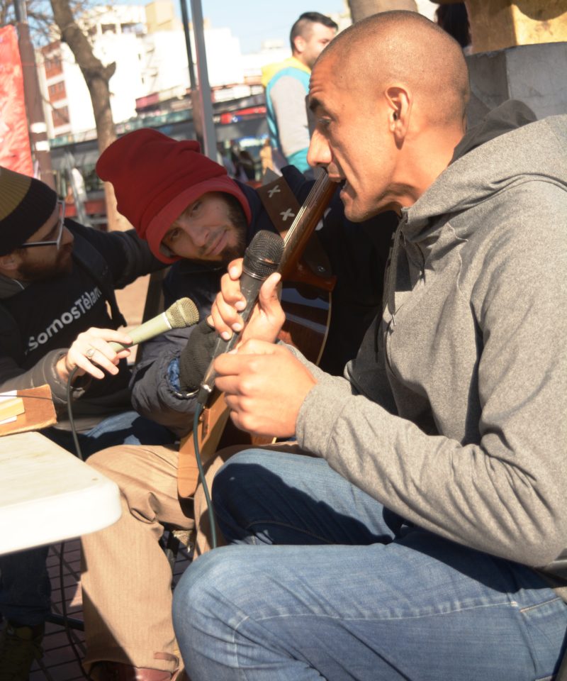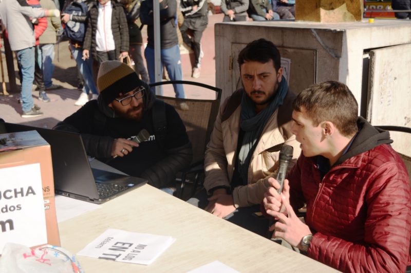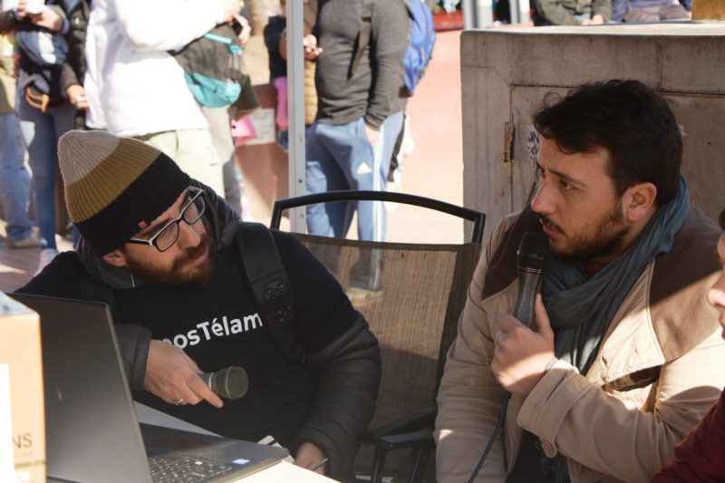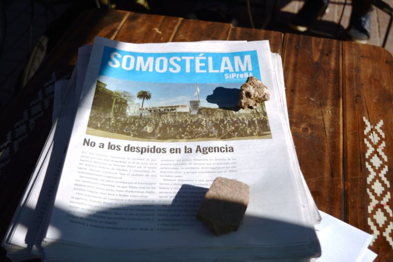 Julio Mosle, trabajador despedido de la agencia, y oriundo de la ciudad de Lanús, fue uno de los encargados de la organización de la actividad, que contó con una radio abierta de 10 a 15 y el reparto de diferentes piezas gráficas relacionadas con la actualidad del reclamo. «El vaciamiento de Télam es la primera decisión de ajuste del gobierno, tras el acuerdo con el Fondo Monetario Internacional. Es importante ganar el conflicto para demostrarles a ambos que si deciden venir por los trabajadores, no los vamos a dejar pasar», aseguró en exclusiva al portal.