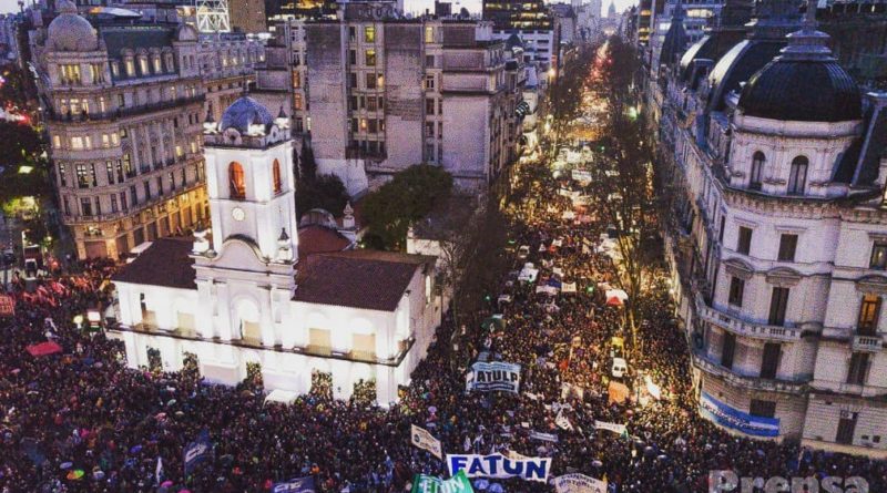 En un día funesto para la economía de los argentinos, en medio de una lluvia persistente y por momentos helada, una multitud ganó las calles de Buenos Aires -y de varias ciudades del país- para defender la universidad pública y gratuita. ¿Cuántos eran? Muchos. TN, un canal que suele «tirar a menos» las movilizaciones populares, estimó la convocatoria en 100 mil personas. C5N, un canal que las suele mirar con simpatía, la estimó en 350 mil personas. ¿Cuántos eran? Al arrancar la marcha, la multitud iba, compacta, desde la 9 de julio hasta el Congreso, y luego desde Callao hasta Presidente Perón. Once cuadras abigarradas de gente. Cuando terminó la marcha, la gente llegaba desde la Plaza de Mayo hasta la calle Santiago del Estero y un poco más también. En momentos en que el dólar se dispara hasta la estratósfera y que los docentes protestaban ante la oferta de un aumento del 15 por ciento, ni siquiera el clima destemplado opacó la convocatoria. Nada menos que 57 universidades nacionales se encuentran en conflicto en este momento: recién esta semana el ministro de Educación, Alejandro Finocchiaro, aceptó correrse del 15 por ciento ofrecido inicialmente y prometió hacer una nueva propuesta.