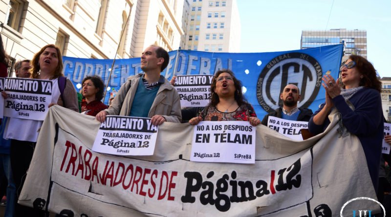 Organizaciones sociales, políticas, y trabajadores de la prensa marcharon junto a los 357 despedidos de la Agencia Télam para reiterar el pedido de inmediata reincorporación de todos ellos, cumplidos 72 días de conflicto. La jornada comenzó a las 14, con la concentración en el Obelisco. Minutos más tarde, las columnas se dirigieron por la avenida Corrientes hasta las inmediaciones del CCK, ubicado frente al Luna Park, donde realizaron el acto central.