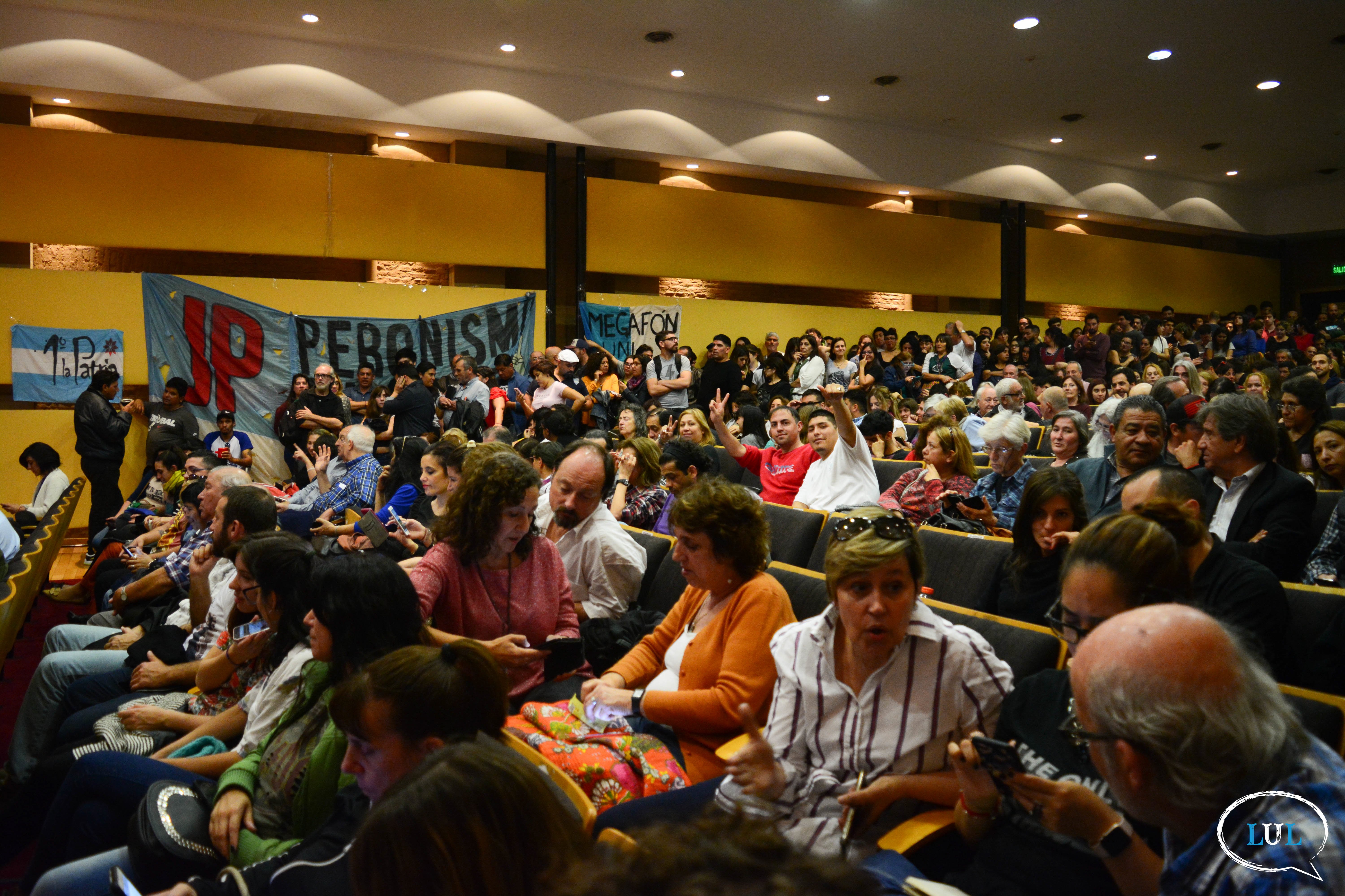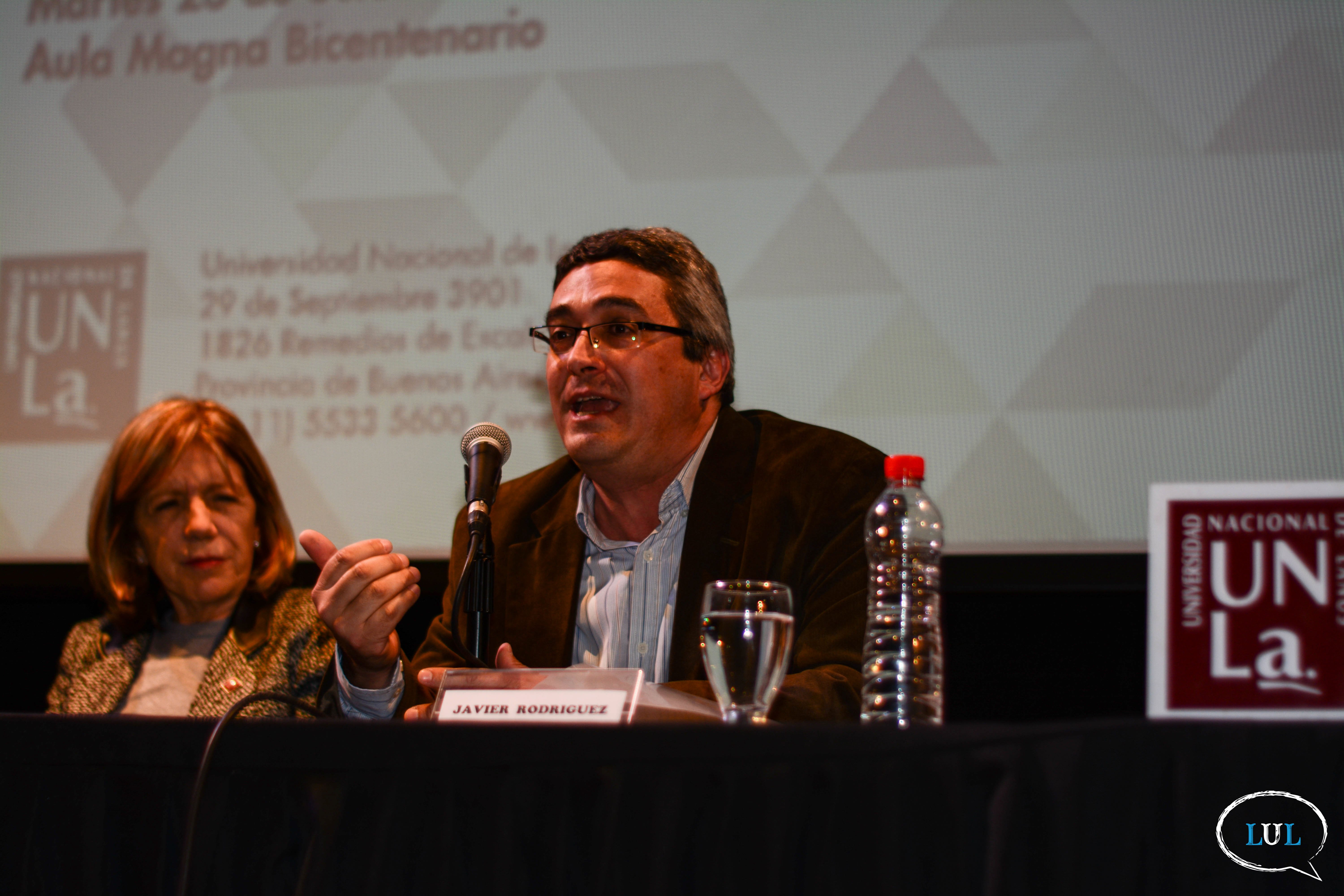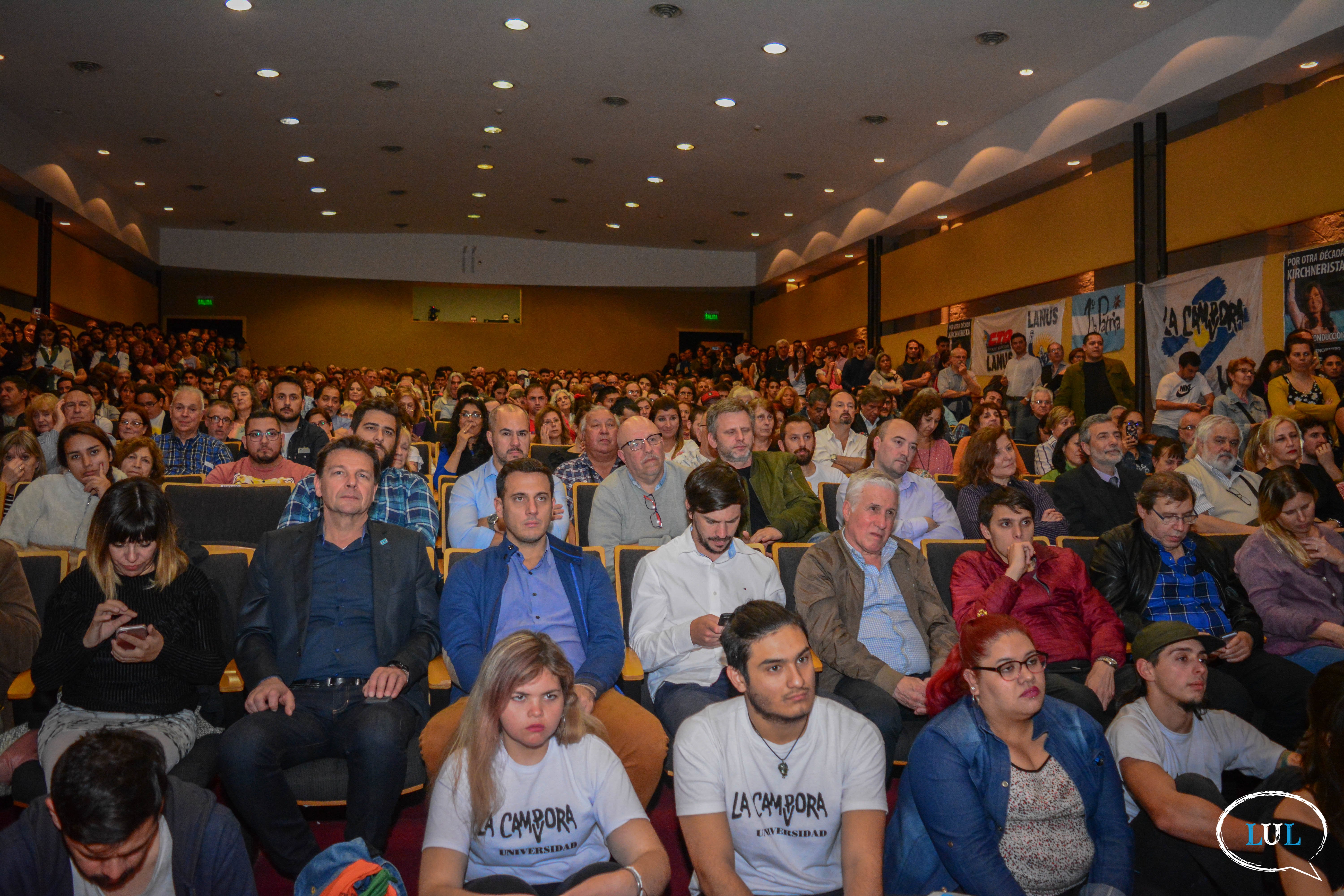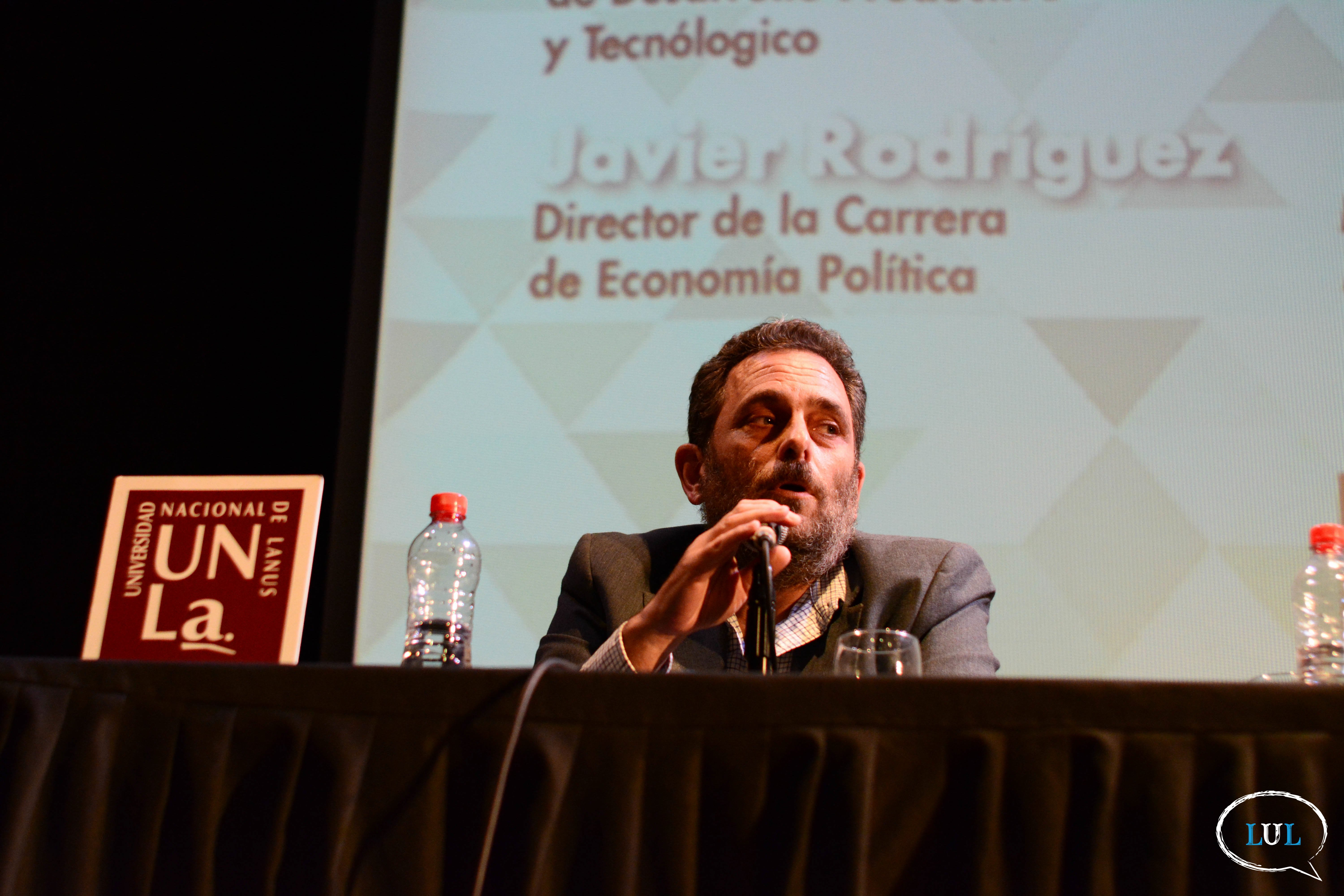 Ante un Aula Magna del Bicentenario de la UNLa repleta de estudiantes, docentes, trabajadores, vecnos, militantes y dirigentes políticos, el legislador estuvo acompañado por la rectora de la Casa de Altos Estudios, Ana Jaramillo; el director de la Carrera de Economía Política, Javier Rodríguez; y el titular del Departamento de Desarrollo Productivo y Tecnológico, Pablo Narvaja.
