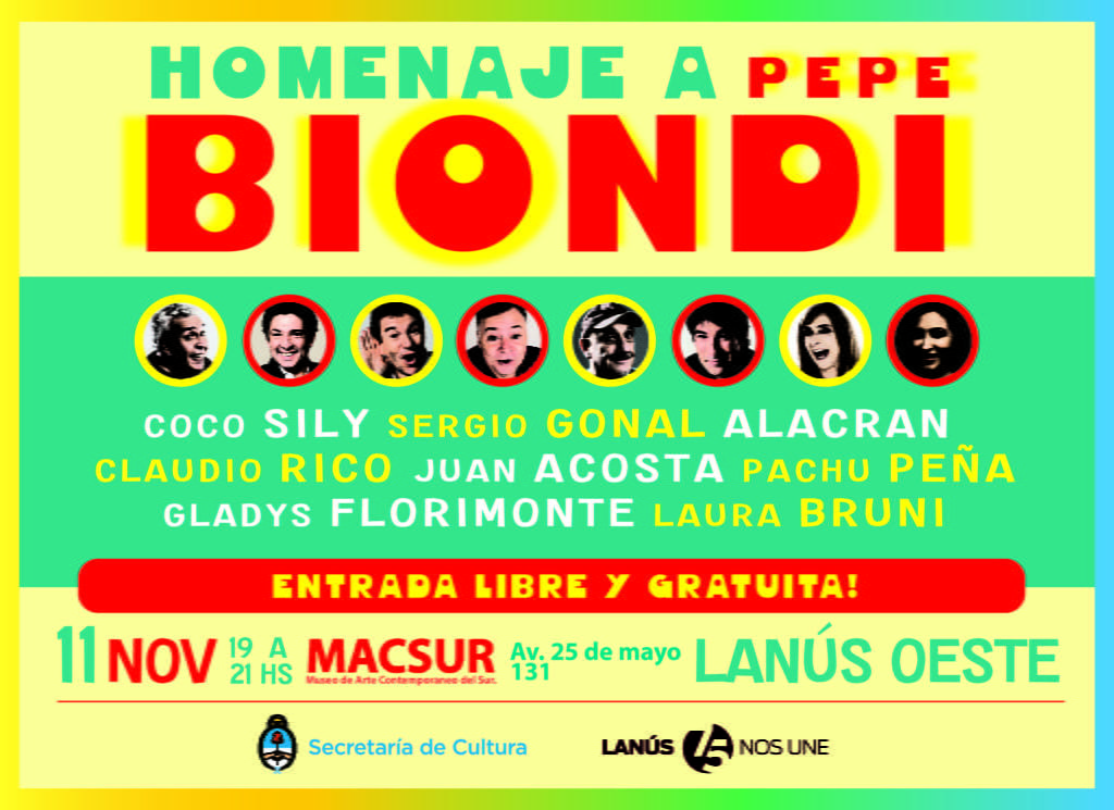 La Secretaría de Cultura del Municipio de Lanús llevará adelante un homenaje a Pepe Biondi, uno de los más grandes cómicos del país, oriundo de Remedios de Escalada.