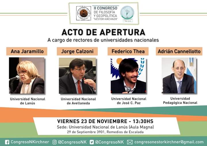 La UNLa será sede del II Congreso de Filosofía y Geopolítica «Néstor Kirchner»