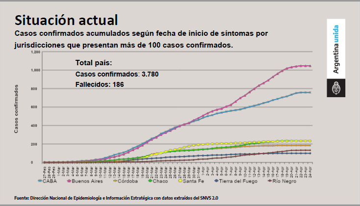 El mandatario explicó esta noche que ahora, con fecha del 25 de abril, los contagios se multiplican cada 17 días, lo que permitió que el sistema sanitario pueda dar respuesta.
