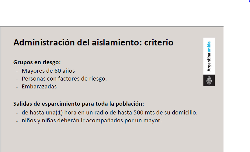 El mandatario anunció además que todas las personas, no consideradas de riesgo, podrán salir una hora hasta unos 500 metros de su casa en una actividad recreativa, pero no salir a correr o andar en bicicleta.