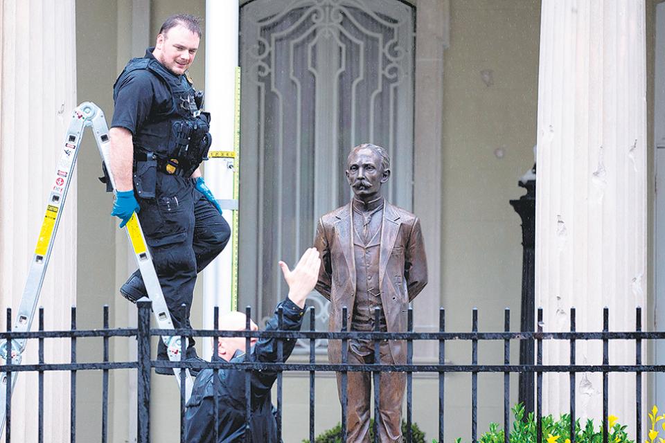 En el saco de José Martí se ve un orificio de bala de fusil AK-47 sobre su lado izquierdo. A 125 años de su caída en combate no es que lo hayan matado dos veces. Es su estatua, ubicada dentro de la embajada cubana en Washington. Tampoco es el único disparo que impactó sobre el frente y el interior de la sede diplomática. Más de treinta balazos dejaron su huella sobre las columnas dóricas, vidrios y paredes del edificio construido en 1917.