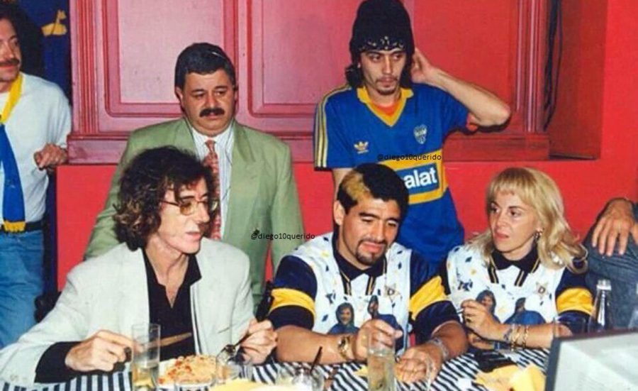 -Mi viejo tenía una fábrica de pelotas en los 90, una PyMe, le estaba yendo muy mal por el tema de la apertura de las importaciones y empezó a incursionar en el rubro de las camisetas para clubes de barrio, la gente que te encargaba camisetas para jugar con los amigos, etc. Justo cuando se estaba dando la vuelta de Maradona a Boca, viene una persona cualquiera, un desconocido a la fábrica y le dice si podía hacer unas camisetas con la imagen de Maradona y y Caniggia con los colores de Boca. Y le encarga mil camisetas. Mi viejo la diseñó, le hizo 400 o 500, porque estaba muy mal económicamente. Y cuando viene este hombre a llevárselas, se las quería llevar en consignación. O sea, no se las quería pagar sino que se las quería llevar para pagárselas después. Mi viejo le dijo «Mirá, no te conozco, mirá si después me las llevás y no las pagás más», etc. Entonces el tipo le dijo «Ahora no las quiero», y mi viejo se quedó con ese clavo. Parecen poco 400 camisetas, pero para una persona que se está fundiendo es un montón de plata. Mi viejo contactó a un cliente que tenía casa de artículos deportivos, le contó la historia y el tipo le dijo «Dame 10 y vemos qué onda». Ahí termina. El sábado o el domingo juega Boca. Mi viejo está mirando la tele en casa previa del partido, somos los dos fanáticos de Boca, y aparece Maradona yendo para la cancha con esa camiseta. Después Maradona juega el partido, Claudia en la tribuna con la camiseta puesta… Después se van a festejar a un restaurante y aparecen los dos, cada uno con la camiseta puesta… Jugaban Boca y Colón, fue el día en que Maradona se peleó con Toresani y le dijo «Te espero en Segurola y Habana»… Imaginate la alegría de mi viejo…