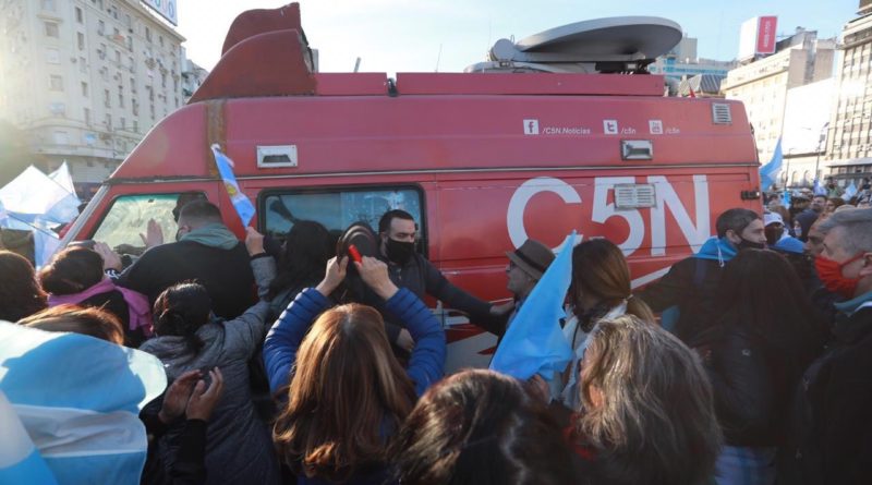 Gravísimo: atacaron brutalmente al móvil de C5N y lo echaron de la marcha anticuarentena