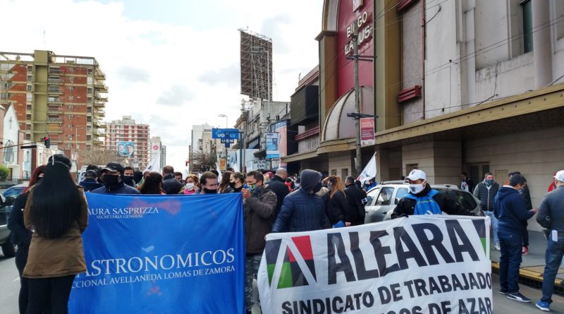 Trabajadores y trabajadoras del Bingo Lanús realizaron este viernes al mediodía una concentración en la puerta del lugar para reclamar el pago completo de sus salarios correspondientes a mayo y junio, como también el proporcional a la primera cuota del Sueldo Anual Complementario (SAC).