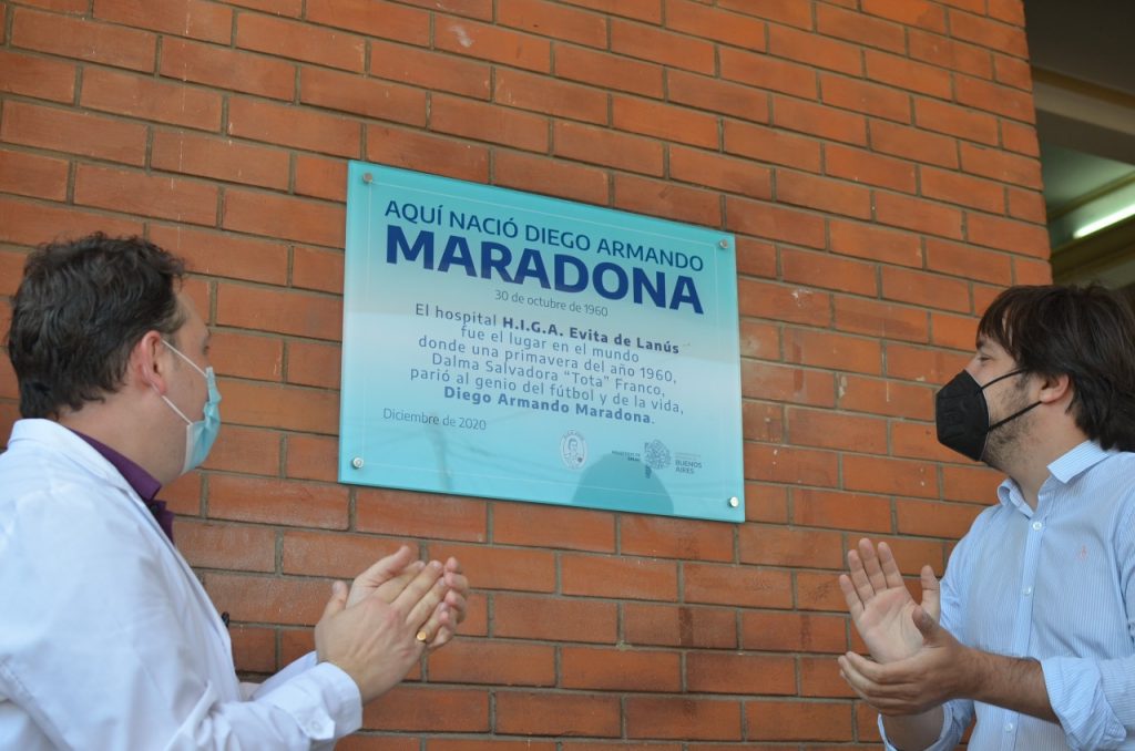 En el hospital Evita, donde Doña Tota dio a luz al 10, el jueves 10 de diciembre, a las 10 de la mañana, se llevó a cabo un acto en memoria de Pelusa, como lo llamaban desde chico. La jornada consistió en el descubrimiento de una placa que conmemora el nacimiento de Diego Armando Maradona aquel 30 de octubre de 1960, luego de una recorrida por la nueva sala de pediatría, en el marco de una serie de obras de puesta en valor que viene realizando el Estado provincial en el hospital de Lanús Oeste.