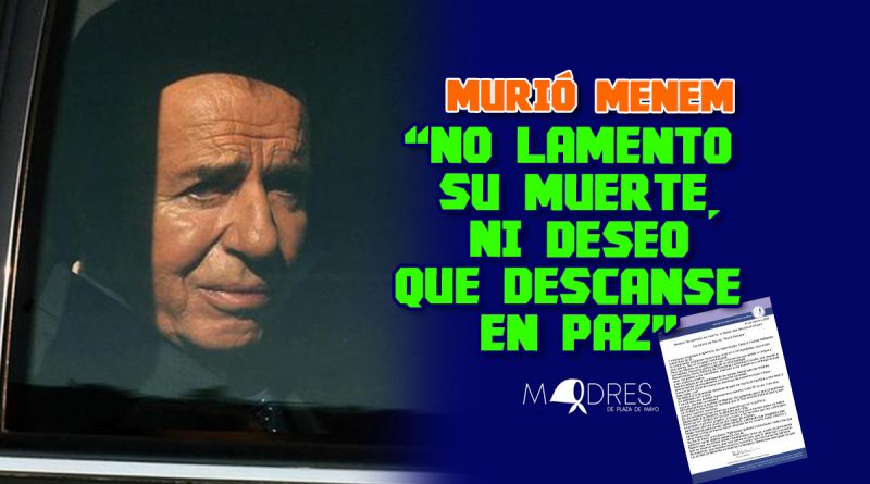 No lamentamos la muerte de Menem. No podemos decir que la sentimos.