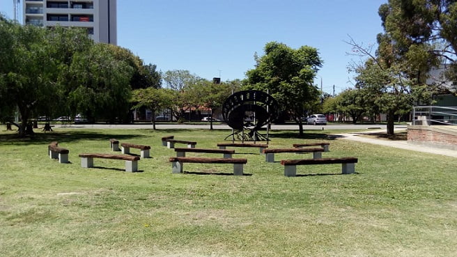 En varias, ya se emplazaron bancos hechos con durmientes de quebracho del ferrocarril con bases hormigón, fabricados en la Universidad.