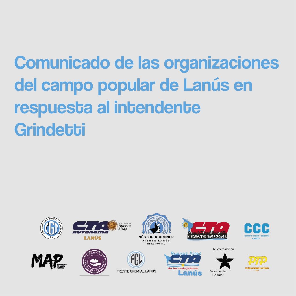 A través de un comunicado difundido por las redes sociales, distintas «organizaciones políticas, gremiales y sociales» que conforman «el campo popular en Lanús» se expresaron luego de que el intendente pidiera evitar manifestaciones.