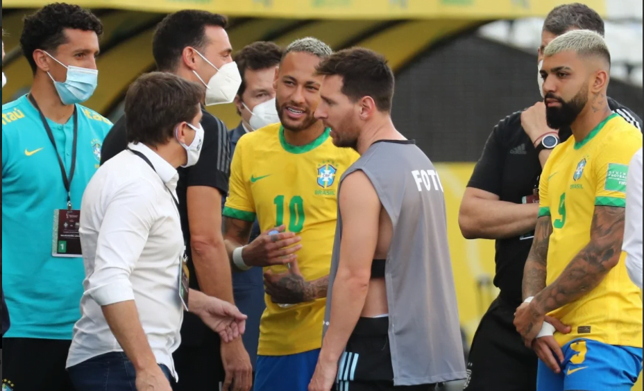 Un extraordinario papelón, sin antecedentes en la historia del fútbol, se produjo hoy en el Arena Corinthians, con la inesperada suspensión del encuentro entre Brasil y Argentina, previsto para hoy por las eliminatorias del Mundial. A los cinco minutos del primer tiempo ingresaron cuatro personas al campo de juego, alegando pertenecer a la Autoridad Nacional de Vigilancia Sanitaria Brasileña (ANVISA) . Los intrusos pretendían llevarse a los cuatro futbolistas argentinos que actúan en la Premier League: es decir Emiliano Martínez, Cuti Romero, Giovanni Lo Celso y Emiliano Buendía. Tres de los cuatro futbolistas mencionados eran titulares. Los escritorios de la FIFA definirán si el partido se juega o no y, en caso de que no se juegue, a quién se le dan los puntos.