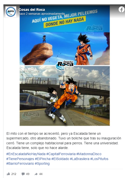 Hace una semana, la cuenta “Cosas del Roca” que brinda información y además difunde las anécdotas, los problemas y los personajes del ramal, compartió una publicación en la que hizo referencia a la famosa canción, con la frase “Escalada tiene, solo que no hace alarde”.