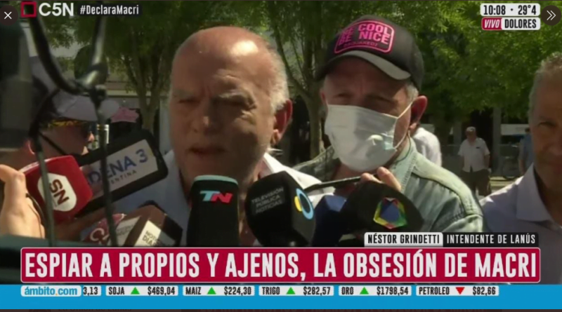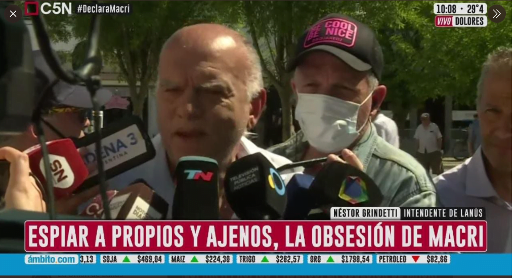 El intendente de Lanús, Néstor Grindetti, se dirigió a Dolores para apoyar a Mauricio Macri en la causa que se lee sigue por espionaje a los familiares de los fallecidos en el hundimiento del submarino ARA San Juan. Grindetti a la sazón jefe de campaña de Juntos en la provincia de Buenos Aires, no olvida a su mentor político y a su patrón: de la mano de Macri fue gerente de SOCMA, luego ministro de Economía de la Ciudad de Buenos Aires y finalmente intendente de Lanús.