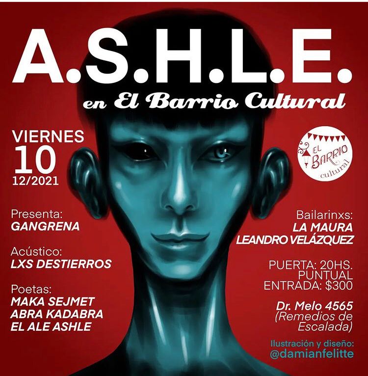 Ashle y Poesía (música rock/ micrófono abierto de poesía) En El Barrio Cultural. Dr. Melo 4565. A las 22.