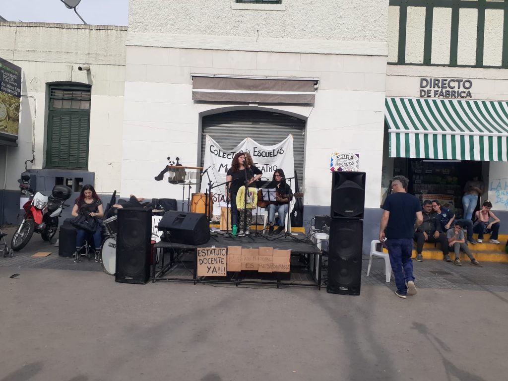 Una nutrida y creativa movilización de docentes y estudiantes de las escuelas de música y teatro se vivió ayer en la plaza de la estación Lanús. En esta ocasión, pusieron su talento al servicio de una causa noble: la supervivencia de los espacios de enseñanza artística del municipio, desdeñados por la actual administración. El reclamo es claro y contundente: que los sueldos sean similares a los que perciben los docentes por tareas similares en otros distritos del conurbano, y que se les reconozca la antigüedad y la estabilidad laboral, ya que la actividad se rige por un sistema de contratos anuales que le permite al municipio cesarlos y despedirlos simplemente dando por finalizados los contratos.