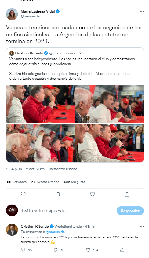 Además, el diputado Cristian Ritondo, referente de Propuesta Republicana (PRO) en la provincia de Buenos Aires, será una suerte de consultor e integrará -muy probablemente- la denominada ‘mesa chica’ en la que se tomarán las decisiones que involucren a la institución ‘roja’.