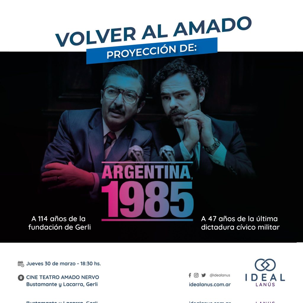 IDEAL Lanús proyectará «Argentina, 1985» en Gerli, a 114 años de la fundación de la localidad y por el Mes de la Memoria
