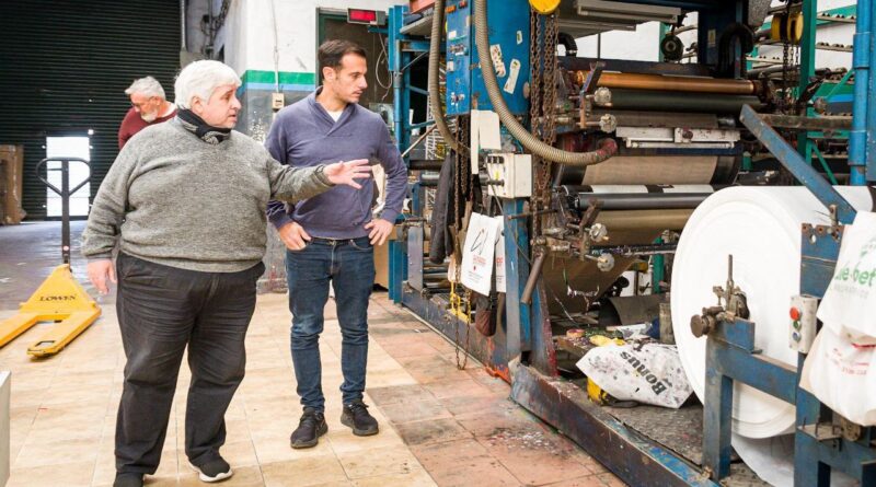 Julián Álvarez recorrió la gráfica Erwcamban de Valentín Alsina, y llamó a «recuperar la capacidad productiva» de Lanús