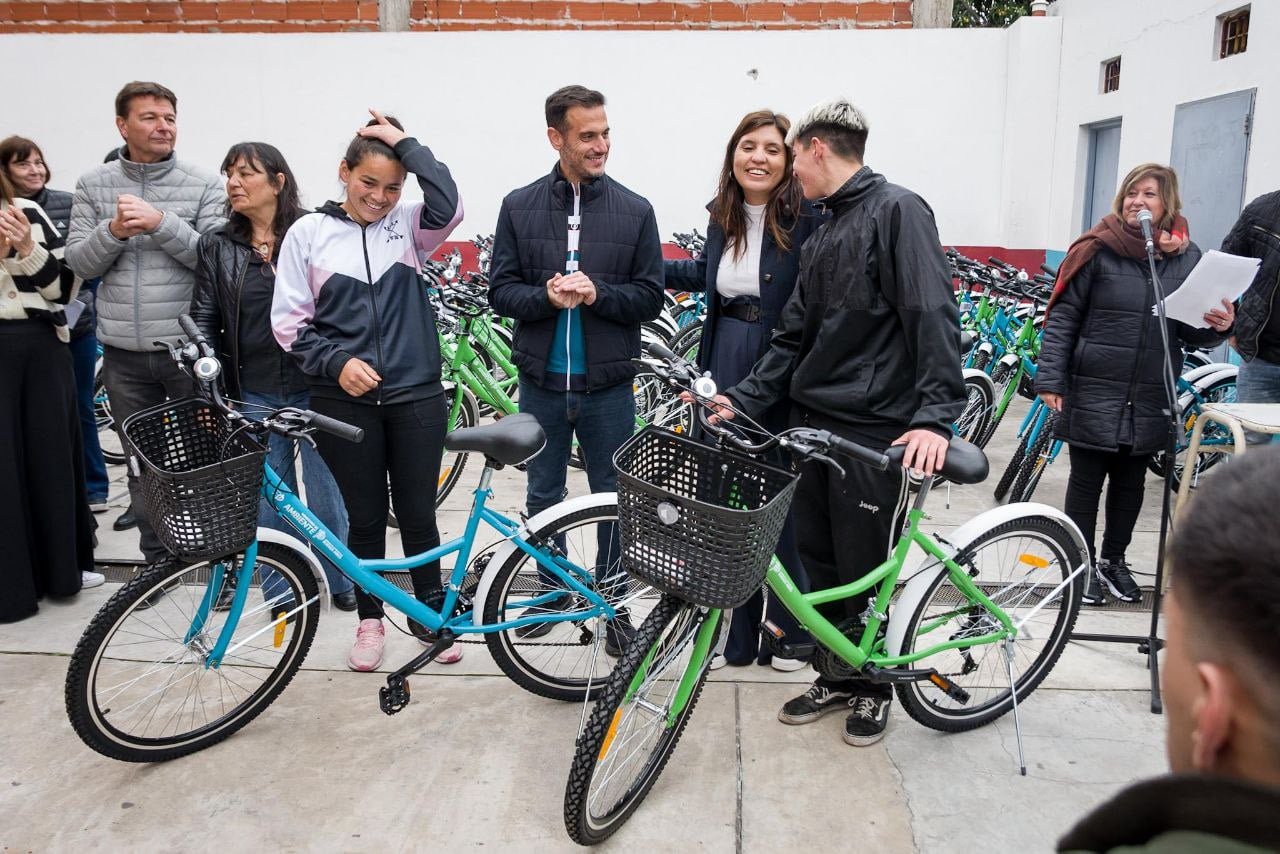 Julián Álvarez y la ministra Daniela Vilar entregaron más de 100 bicis a estudiantes de Lanús