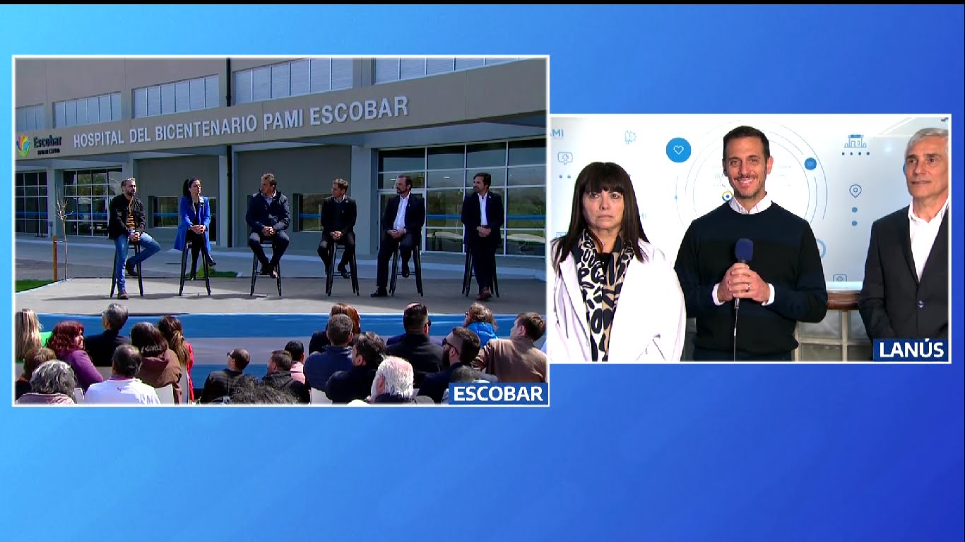 El candidato a intendente de Lanús por Unión por la Patria Julián Álvarez, el candidato a presidente por Unión por la Patria Sergio Massa y la directora ejecutiva de PAMI Luana Volnovich anunciaron la inauguración de obras en la Clínica PAMI Lanús (ex Clínica Estrada de Remedios de Escalada), a través de una videoconferencia.