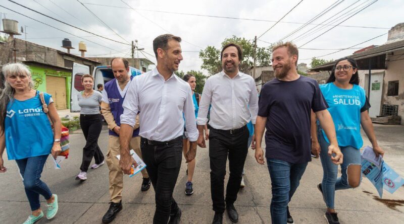 El intendente de Lanús, Julián Álvarez, su par de Lomas de Zamora, Federico Otermín y el ministro de Salud de la Provincia de Buenos Aires, Nicolás Kreplak participaron de un gran operativo de prevención, promoción y descacharreo de dengue en el límite entre ambos distritos, en Villa Caraza y Villa Fiorito.