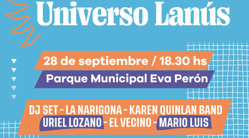 En el marco del 80° aniversario de la ciudad, Lanús Gobierno invita a los vecinos y vecinas al Festival Universo Lanús que se celebrará este sábado 28 de septiembre en el Parque Municipal Eva Perón, ubicado sobre las calles Purita y Salta, Remedios de Escalada, a partir de las 18.30 horas.