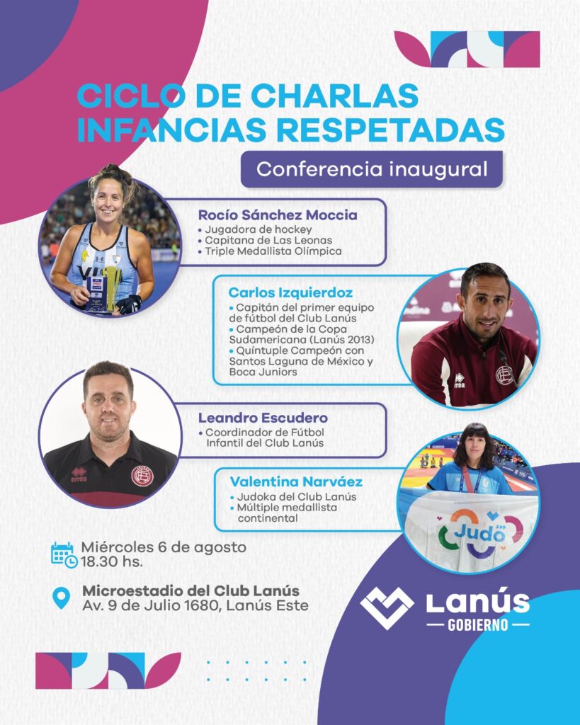 Lanús Gobierno invita a la comunidad a participar a la conferencia inaugural del Ciclo de Charlas Infancias Respetadas, este miércoles 6 de agosto a las 18:30 horas. La jornada se desarrollará en el Microestadio del Club Lanús, ubicado sobre la Avenida 9 de Julio 1680, en Lanús Este.