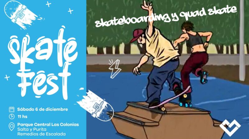 Lanús Gobierno informa a los vecinos y a las vecinas que este sábado 6 de diciembre, de 11 a 19, se desarrollará el “Skate Fest” en el Parque Central Las Colonias, ubicado en Salta y Purita, en la localidad de Remedios de Escalada. Se trata de una jornada urbana de skateboarding & quad skate donde se realizarán competencias de game of skate, best trick y el campeonato oficial de quad skate femenino, además de contar con shows musicales, intervenciones artísticas, radio abierta y entrevistas en vivo.