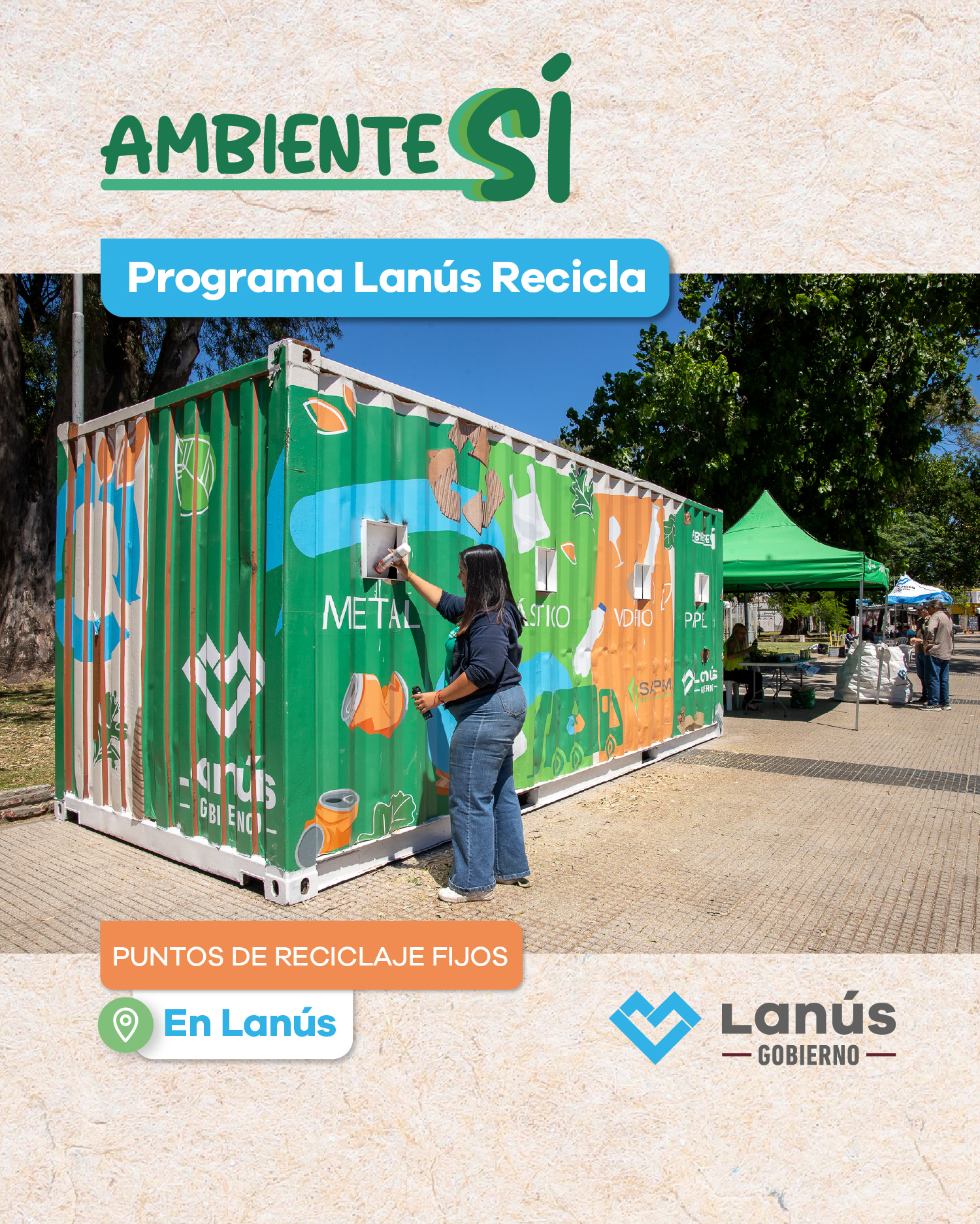 Esta iniciativa se enmarca dentro del Programa de Recolección Diferenciada “Lanús Recicla” y forma parte de los operativos ¡Ambiente Sí! que se desarrollan semanalmente en la ciudad, con el objetivo de continuar con el trabajo diario para lograr que Lanús sea la ciudad que las y los lanusenses merecen.