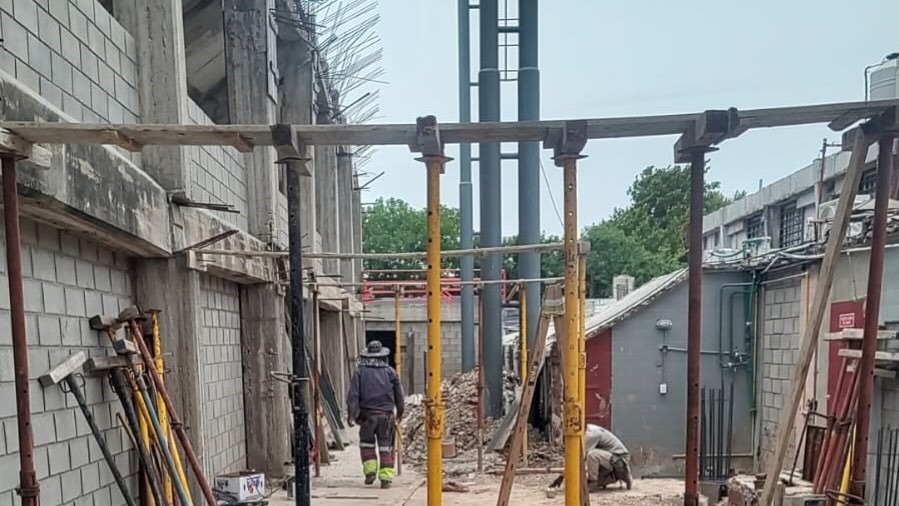 Una de las obras afecta a la estructura de los nuevos vestuarios que empieza a crecer en altura. En ese sentido, puntualizaron que ya “sobresalen los puntales que sostienen el encofrado de las vigas a tres metros de altura, y la base de los nuevos vestuarios”.