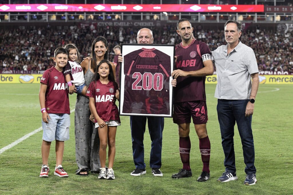 En el entretiempo del partido, Carlos Izquierdoz fue reconocido por haber alcanzado los 200 partidos como futbolista del Club Atlético Lanús.