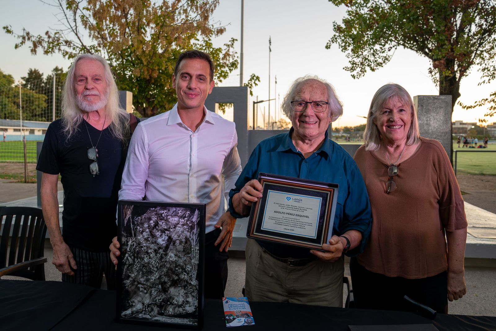 El intendente de Lanús, Julián Álvarez, encabezó la charla abierta “Memoria colectiva, la vigencia de los derechos humanos y los desafíos actuales en materia de democracia y justicia” junto al activista, profesor y Premio Nobel de la Paz, Adolfo Pérez Esquivel, donde reflexionaron acerca de la lucha por la memoria, la verdad y la justicia en la Argentina, en el marco del 50° aniversario del golpe cívico – militar de 1976. El evento se concretó en el Parque de la Memoria, ubicado en Domingo Purita entre Córdoba y Salta, en Remedios de Escalada.