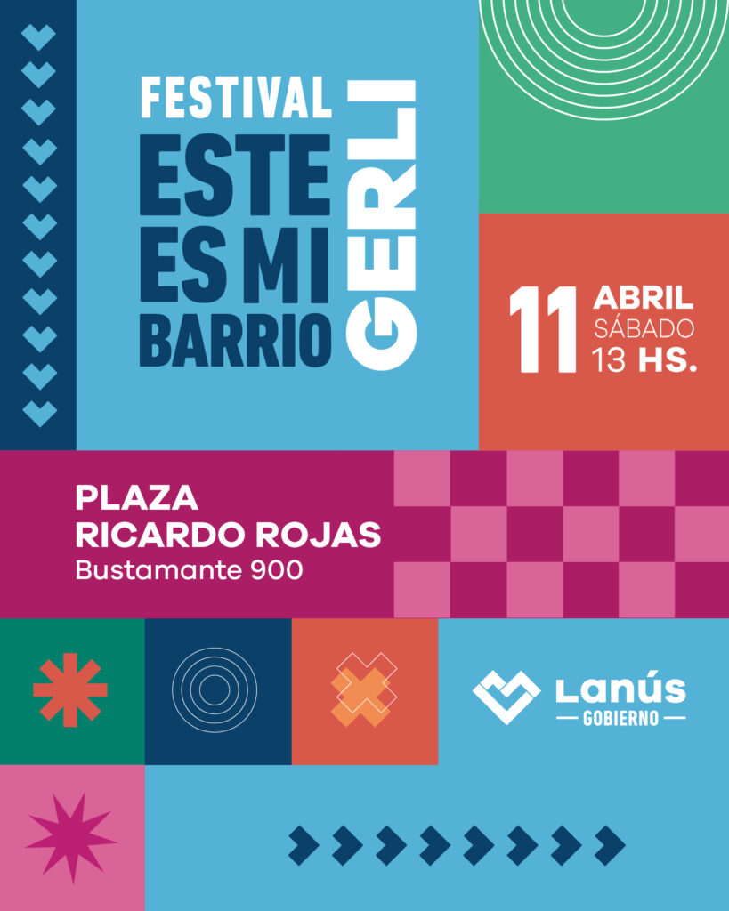 Lanús Gobierno invita a los vecinos y a las vecinas a participar de una nueva edición del festival “Este es mi barrio” por el 117° aniversario de la localidad de Gerli este sábado 11 de abril, a partir de las 13, en la plaza Ricardo Rojas ubicada en la calle Bustamante N° 900, que contará con distintas actividades recreativas, puestos gastronómicos, shows musicales y el cierre estará a cargo del reconocido grupo musical Los Leales.