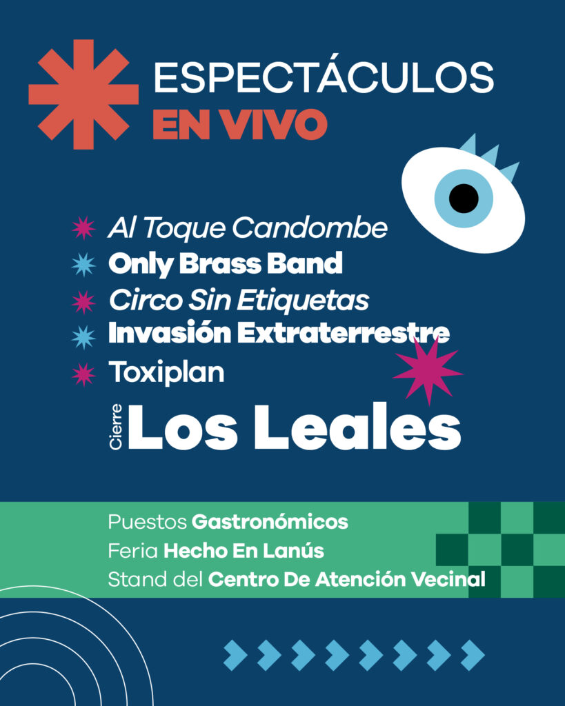 Durante el evento, las y los lanusenses podrán presenciar espectáculos musicales en vivo que incluirán las presentaciones de Al Toque Candombe, Only Brass Band, Circo Sin Etiquetas, Invasión Extraterrestre, Toxiplan y Los Leales.