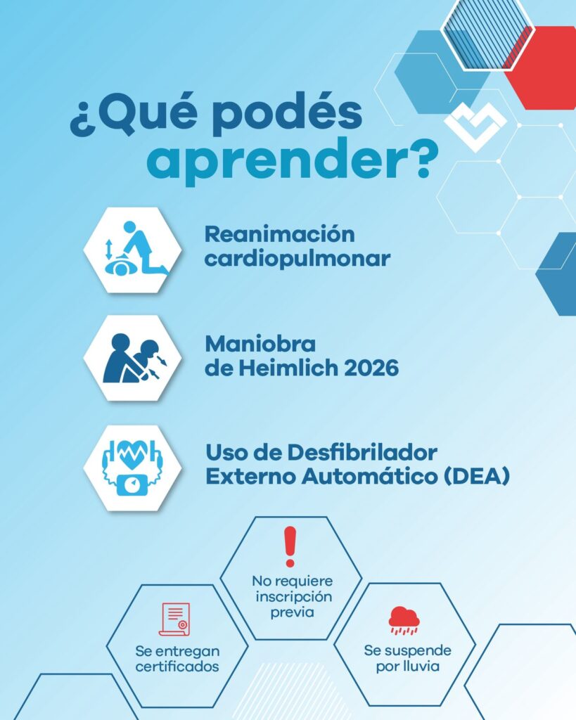 Durante la actividad, las y los asistentes aprenderán a realizar reanimación cardiopulmonar (RCP), la maniobra de Heimlich 2026 y a utilizar correctamente el Desfibrilador Externo Automático (DEA), tres conocimientos que pueden salvar la vida de cualquier persona.